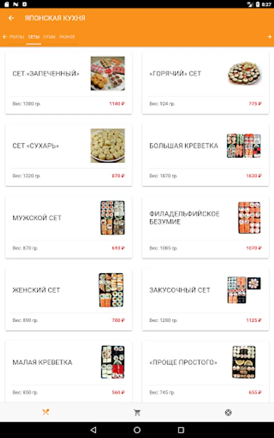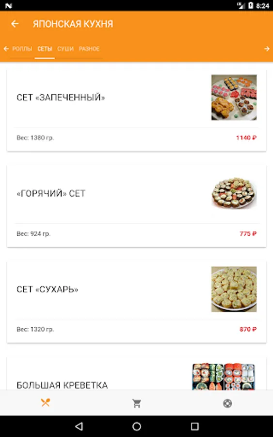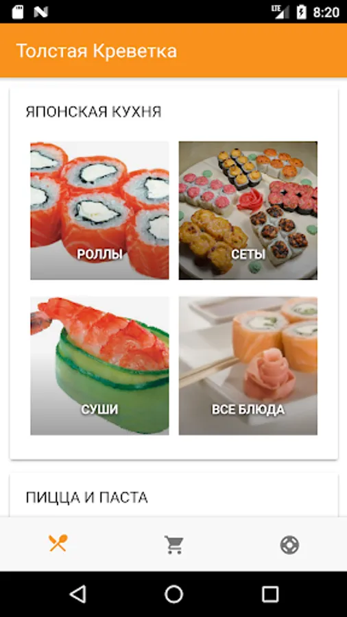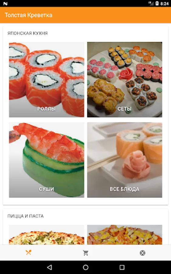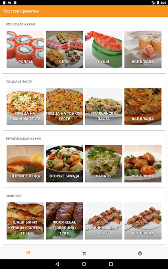 The range of "Tolstoy Shrimp" includes Japanese, Italian, European, Uzbek cuisine, as well as kebab, fast food and desserts.