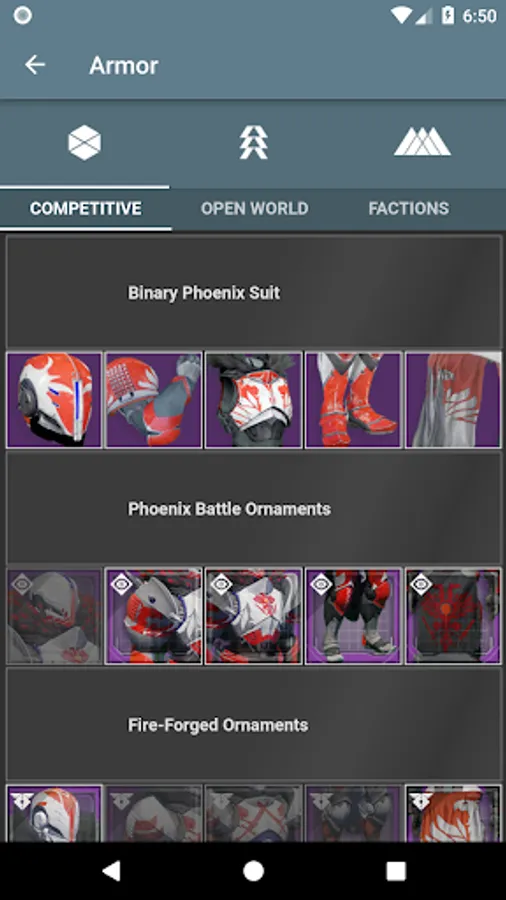 - track your exotic collections, cosmetic collections, armor and weapon sets