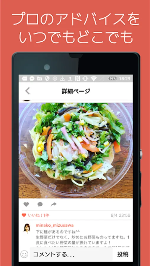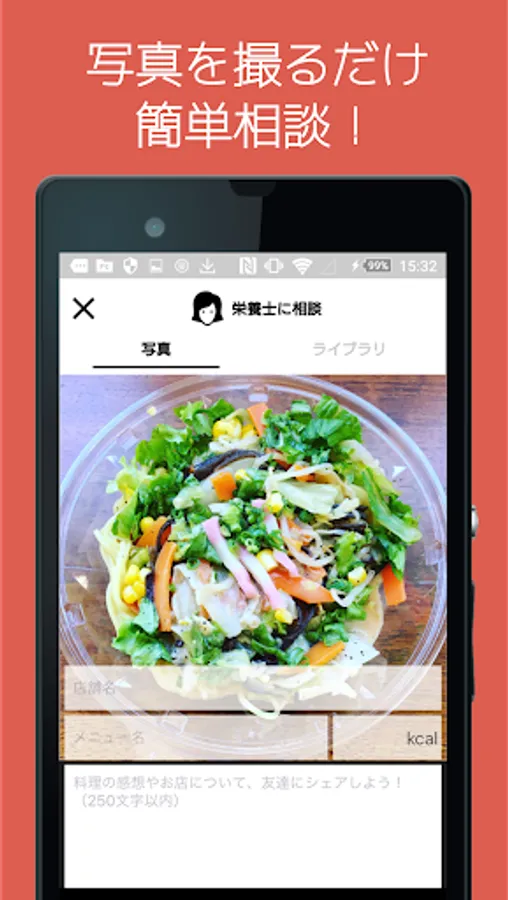 It is equipped with a function that allows you to easily search for a meal that suits your body shape at a convenience store or eating out that tends to overdose calories.