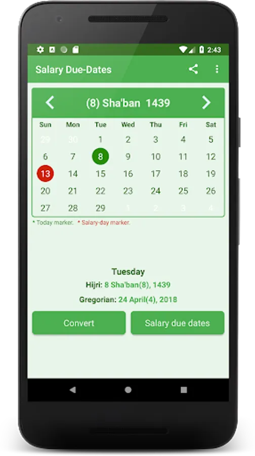★ Includes Widget to display dates on home screen (contains a day, time, Lunar Hijri and Solar Hijri).