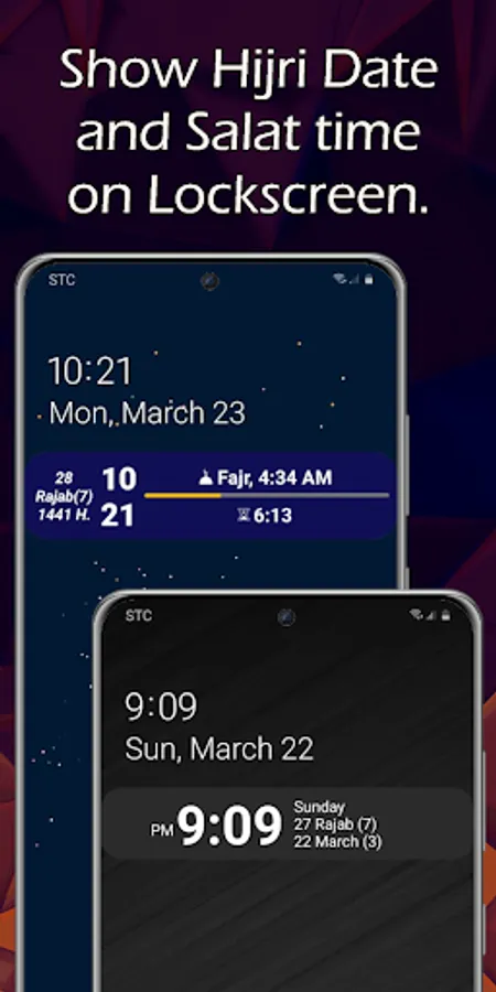 - ★ Shows time, Hijri calendar and Gregorian calendar.