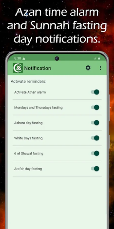 - ★ Sunnah fasting days reminder. for example, Arafah and Ashora.