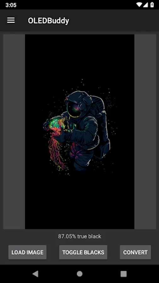 With OLEDBuddy, you can easily open an image, view which pixels are true black, what percentage of all pixels are true black, and if necessary, easily convert lower valued pixels to true black.