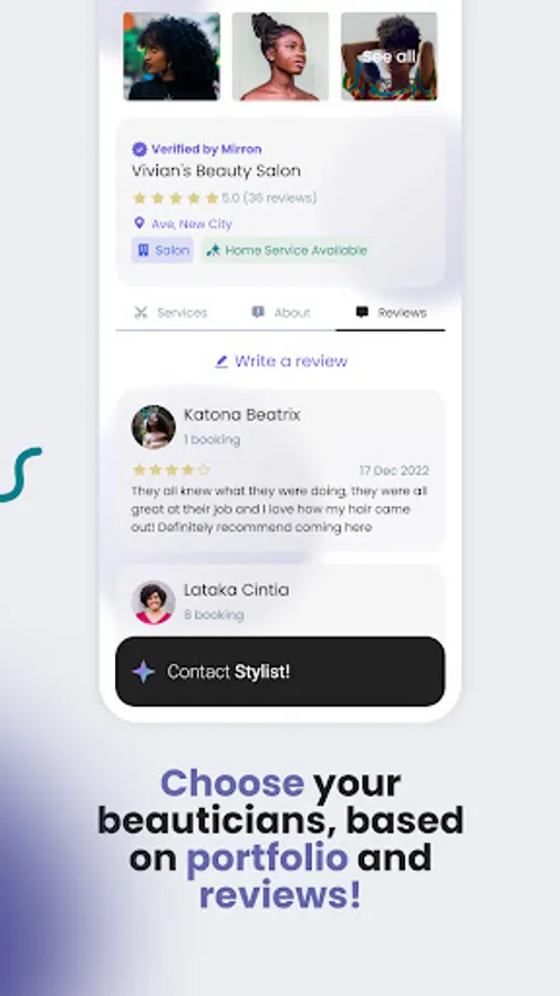 Looking for high-quality and skilled stylists and beauticians in your area? Look no further than Mirron! With our user-friendly app, you can easily find and book salon appointments with professionals who are conveniently located near you.