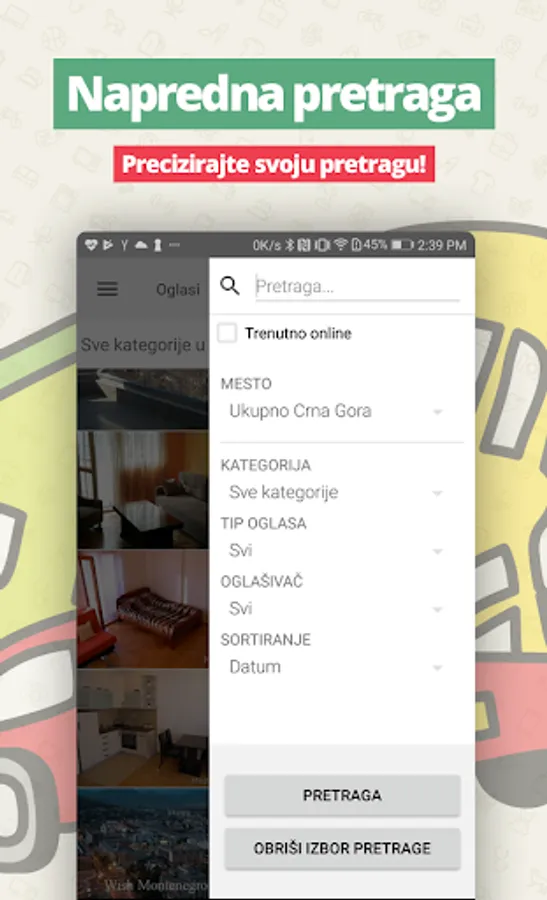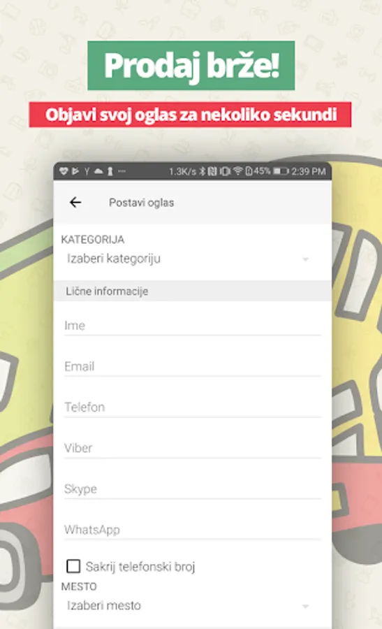 MojTrg.me is a FREE APPLICATION through which you can sell and buy things on the www.mojtrg.me site, which has over 27,000 ads in various categories: Motor Vehicles, Real Estate, Electronics, Furniture, Sports Equipment, Business, and many others.