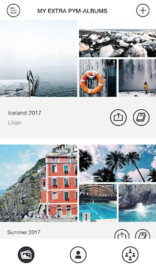 Apart from your own personal album you can also make an (extra) album together .Just invite your 'nearest and dearest' by sending a PYMvite via WhatsApp, mail, Telegram, sms, etc.
