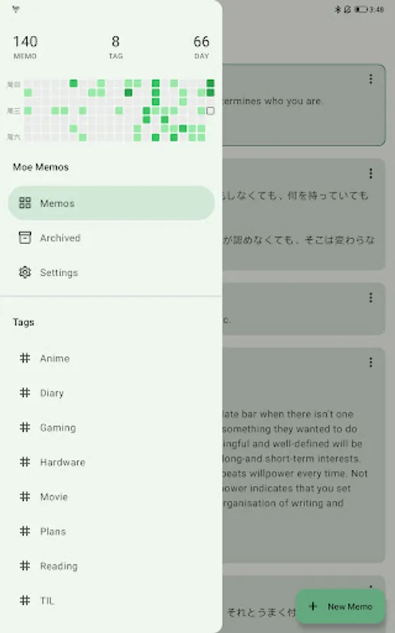 Moe Memos is an app to help you capture thoughts and ideas. To use this app, you must have a self-hosted Memos server set up and running. Find out more at https://github.com/usememos/memos