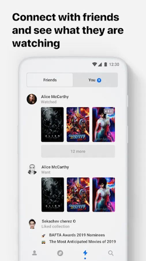An activity feed provides relevant account activity as well as keeps you informed about movies and series your friends have watched or want to watch.