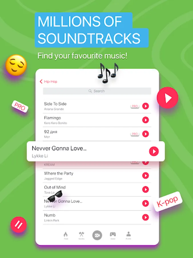 - Share your musical videos with friends on Instagram, Snapchat, Tik Tok, Facebook, Likee, Musical.ly and other social networks!