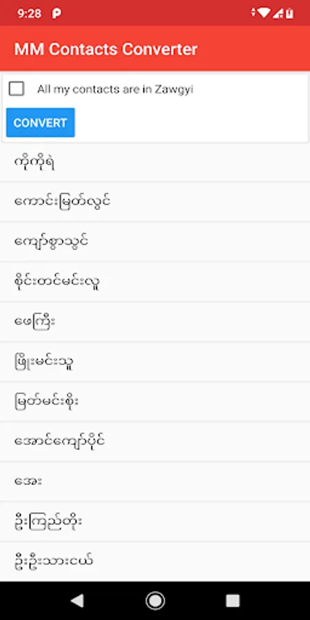 ဇော်ဂျီဖြင့်ရေးထားသော Contacts များကို ယူနီကုဒ်သို့ လျှင်မြန်စွာပြောင်းလဲပေးနိုင်သည်။