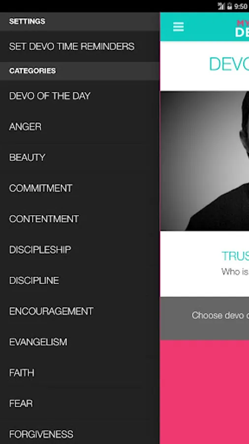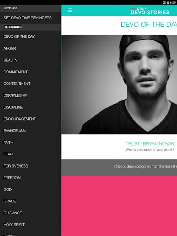 - Optionally set individual daily reminders for devotional times for each day of the week