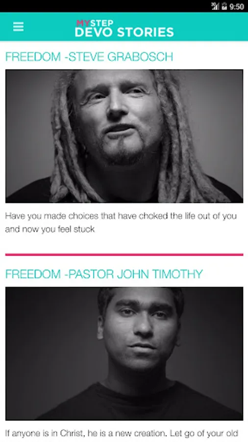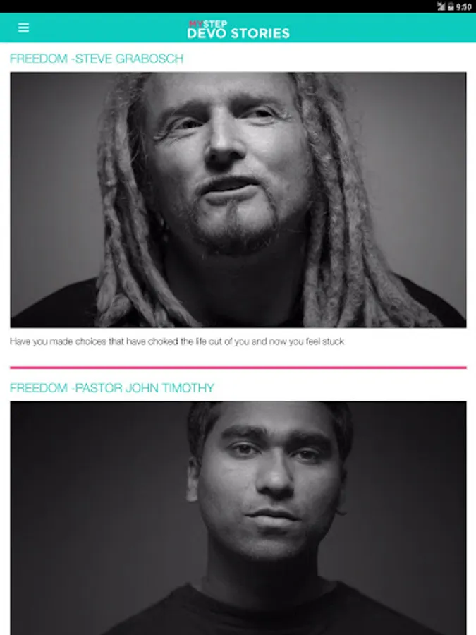 Spending quality time getting to know someone is the key to any real and healthy relationship. This is especially true as it pertains to your relationship with God. This is where MyStep comes in. MyStep is providing a devotional app that will give people the opportunity to explore their faith more deeply, experience God in new and creative ways and, best of all, be challenged and inspired to share the love of God with others. The daily devotional app will encourage and enable users to put aside time to spend with God every day. You will have the opportunity to hear from hundreds of different people from all walks of life; you will see Scripture come to life through the lives and experiences of others; and you will be challenged to live your life in all the freedom and joy that can only come from a real and personal relationship with God. So what are you waiting for? Download the MYSTEP Devo Stories app and begin today!