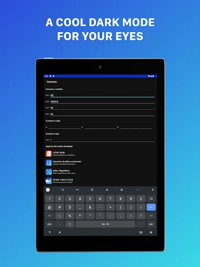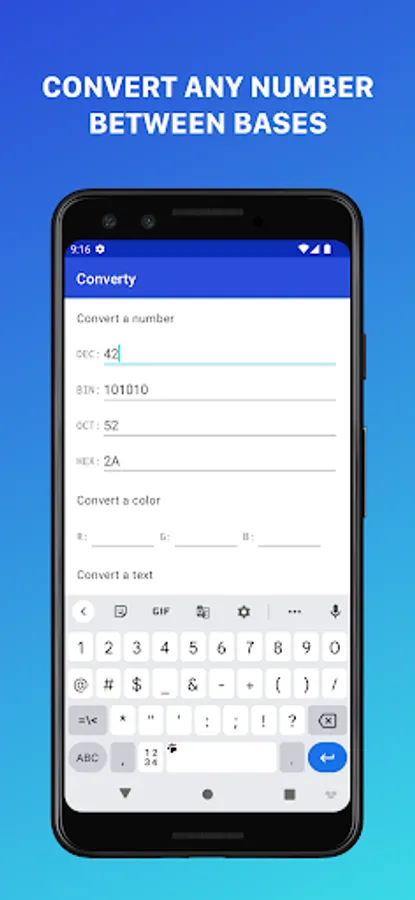 Converty: Base Converter, is the fast and easy way to convert numbers with tons of possibilities for free!