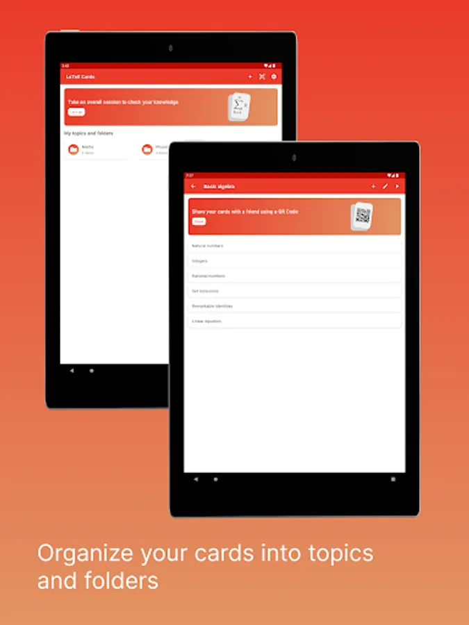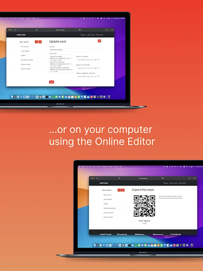 LaTeX Cards is perfect for use in the classroom. As a student, you can create cards for your lessons, review them frequently, and collaborate with classmates.