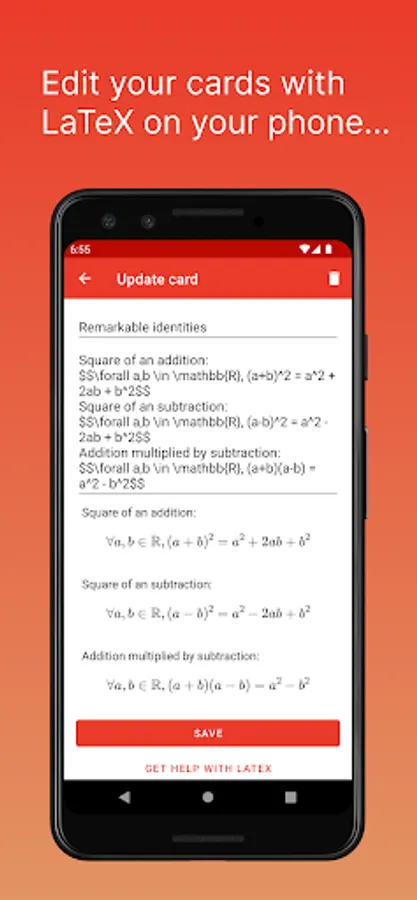 Introducing LaTeX Cards - the ultimate tool for students and teachers looking to create and learn formulas and theorems. Our mobile app makes it easy to create flashcards using LaTeX and customize them to suit your learning style.
