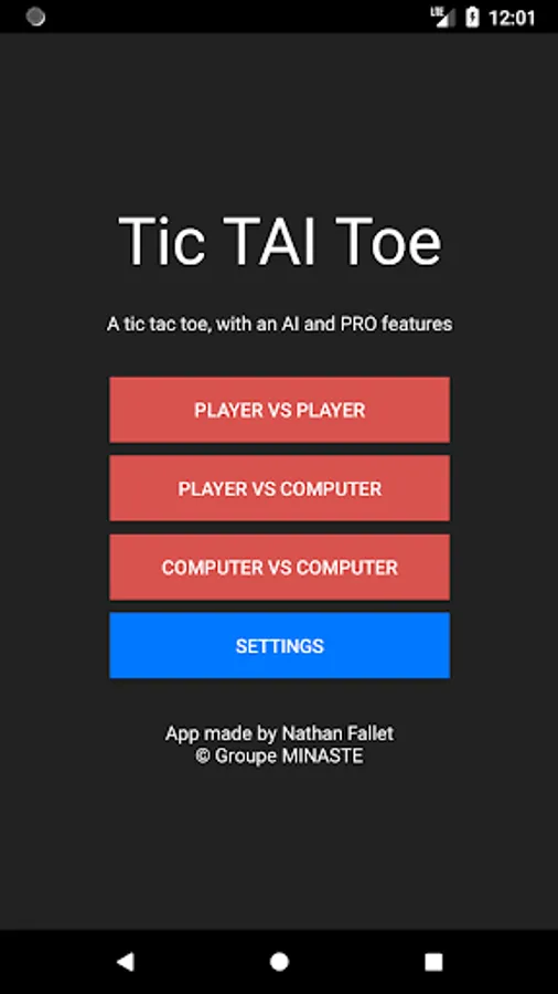 Tic TAI Toe is a Tic Tac Toe game with a built-in artificial intelligence. You can play with 3 modes: with a friends, against the artificial intelligence, or see the artificial intelligence plays with itself (yes, really, it's fun). And by playing the game, you will unlock some hidden features (we won't reveal them here, try it out to discover them by yourself).