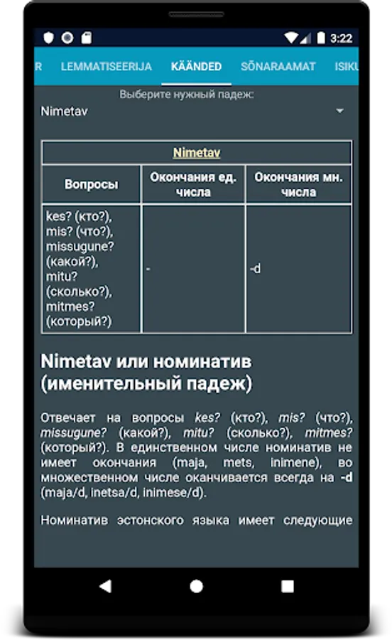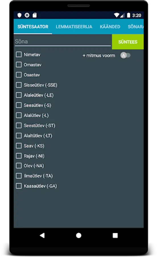 - It can generate forms of nouns in singular and plural, as well as in all cases.