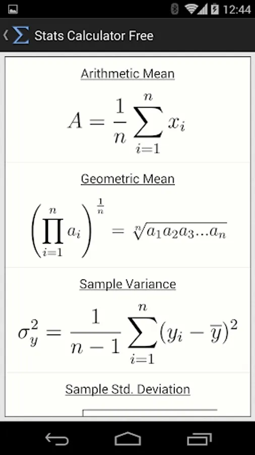 - Reference guide to show the formulas for certain calculations (Mean, Variance, Standard Deviation, and more).