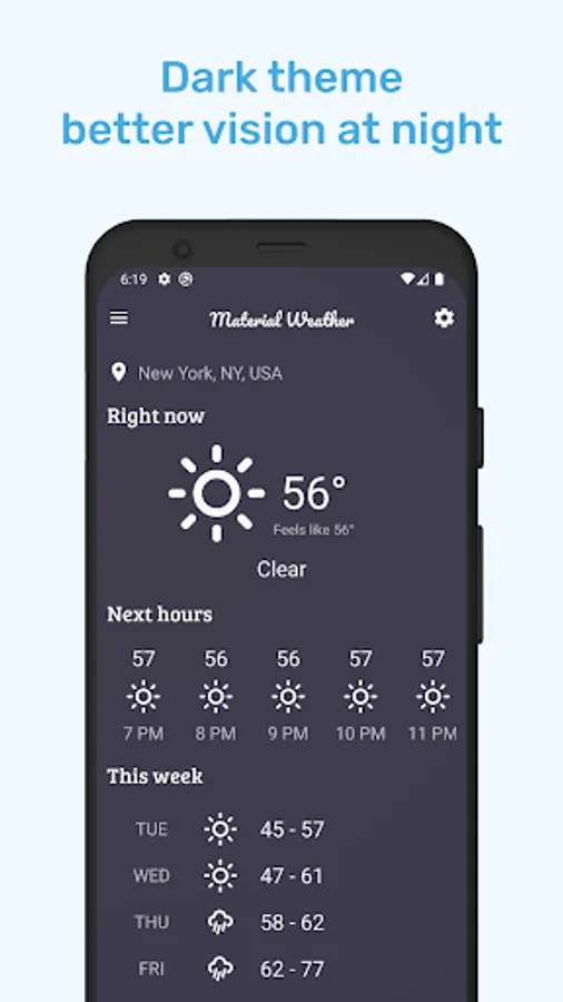Accurate weather forecast, simple minimal design and very easy and quick to use.