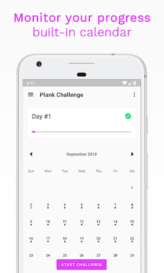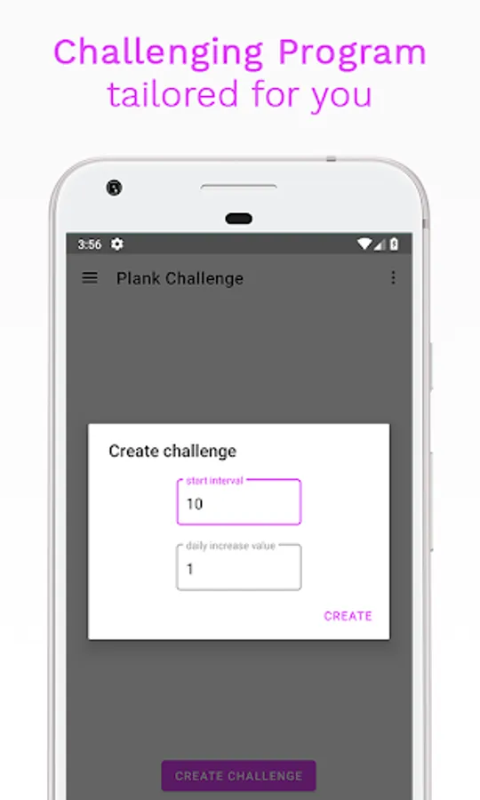 You can design your workout routine by setting the start duration and the how much time to be added each day. Just install the app and follow the daily routine and you will see great results by the end of the challenge.