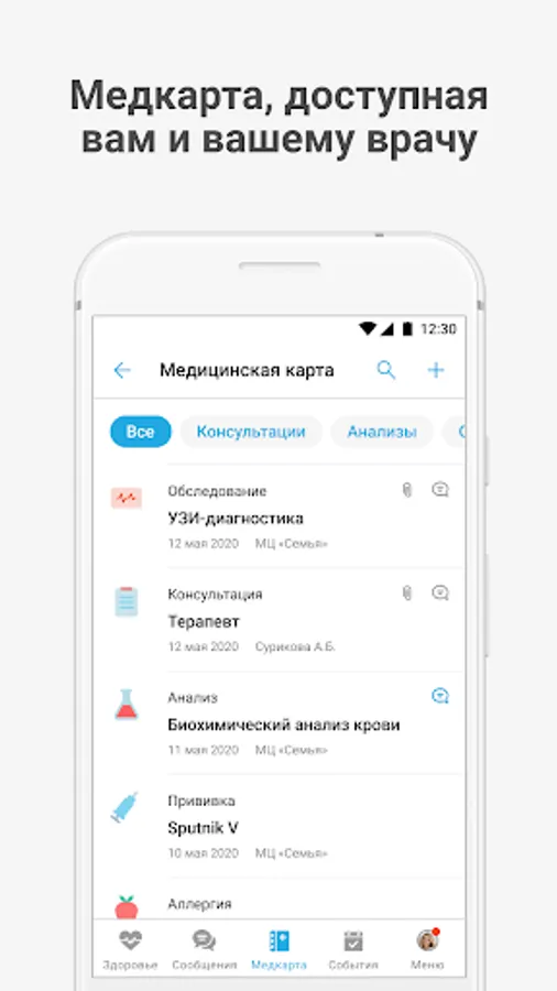 Register in the application, fill out the profile and use the full functionality of the personal account of the patient of the Family Medical Center