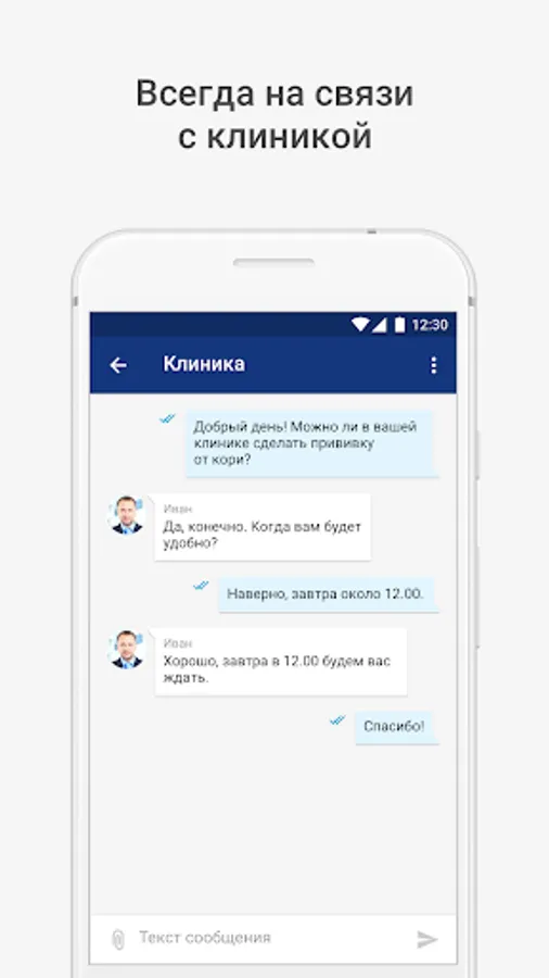 - Communicate with the clinic and doctor chatting. To make an appointment, check with the doctor's details are already assigned to treatment or tell us about the new symptoms.