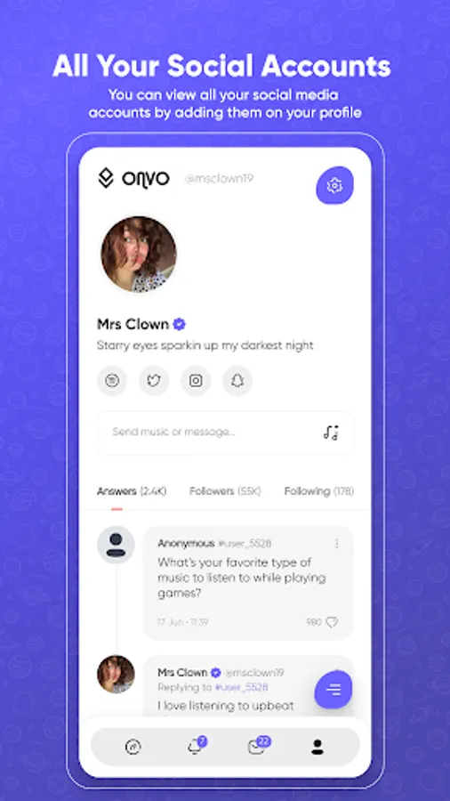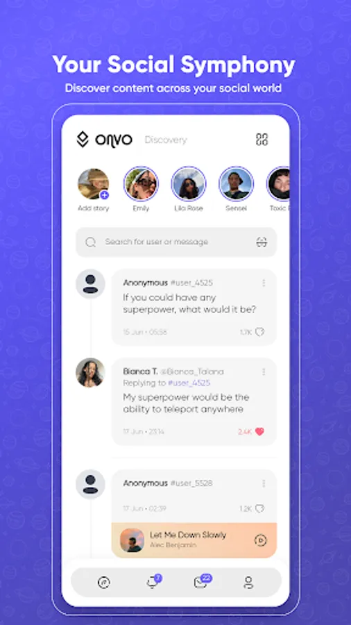 Discover a world of connection with ONVO, a unique social media app that brings friends closer. Send and receive anonymous messages, share your favorite music and stories, or reveal your true identity for genuine conversations. Join the ONVO community and experience the freedom of socializing without limits!