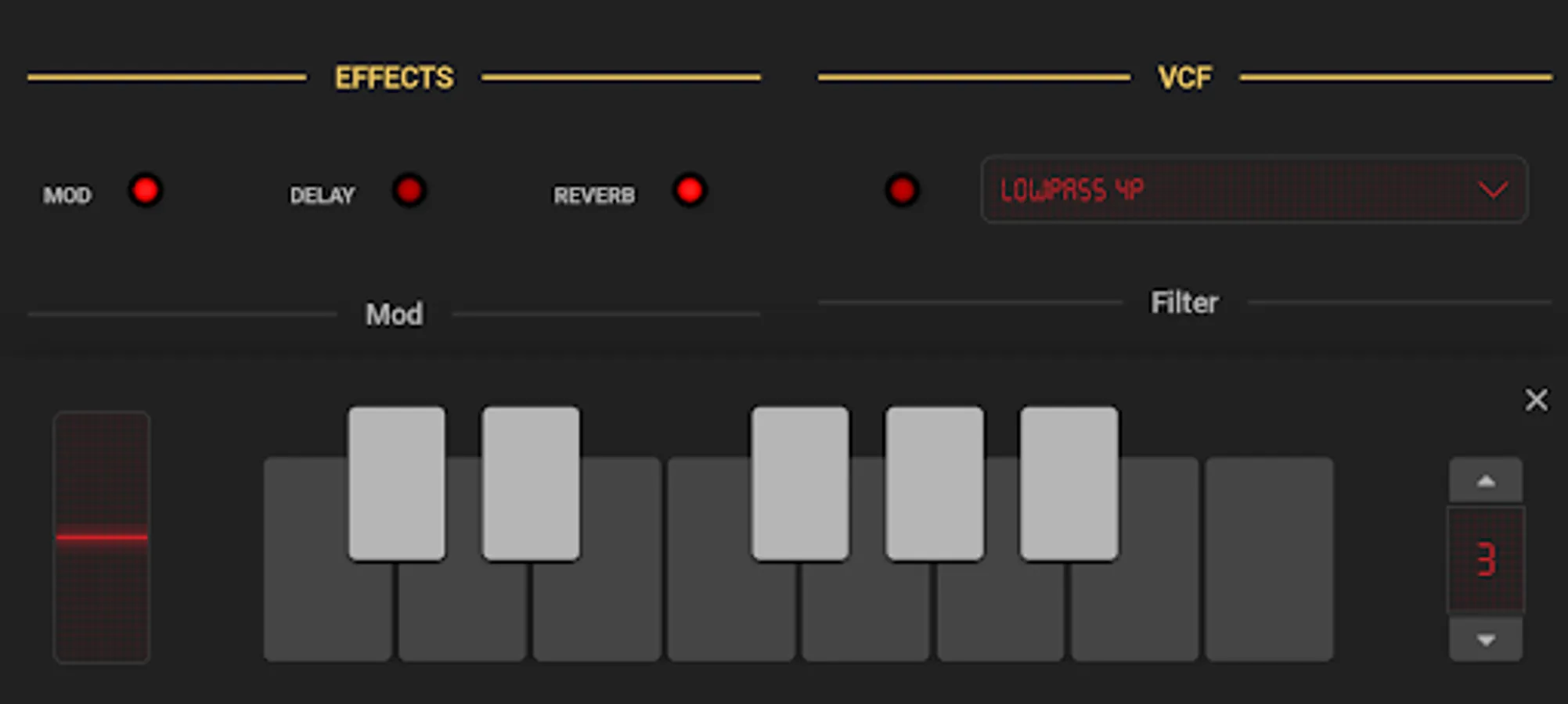 It also includes a touch keyboard, a pitchbend pad and a sequencer.