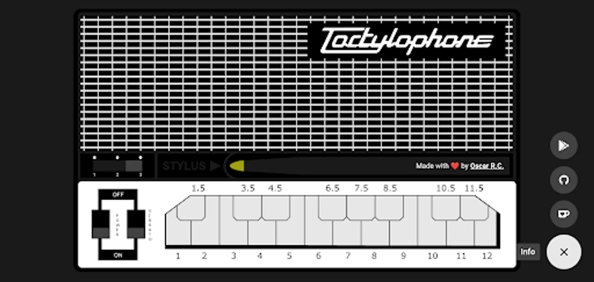 Tactylophone is a monophonic, Stylophone like, synthesizer designed to be played with your fingers in your smartphone or tablet screen.