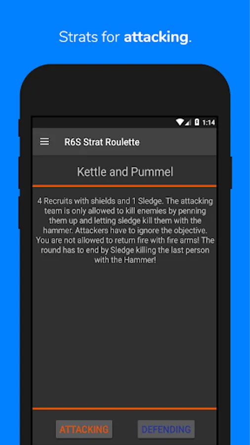 R6S Strat Roulette has two main functionalities. The first one is Strat Roulette; which gives you fun strategies to try with your friends! The second one is the stats. Lookup player stats in realtime and find out how your opponents are performing!