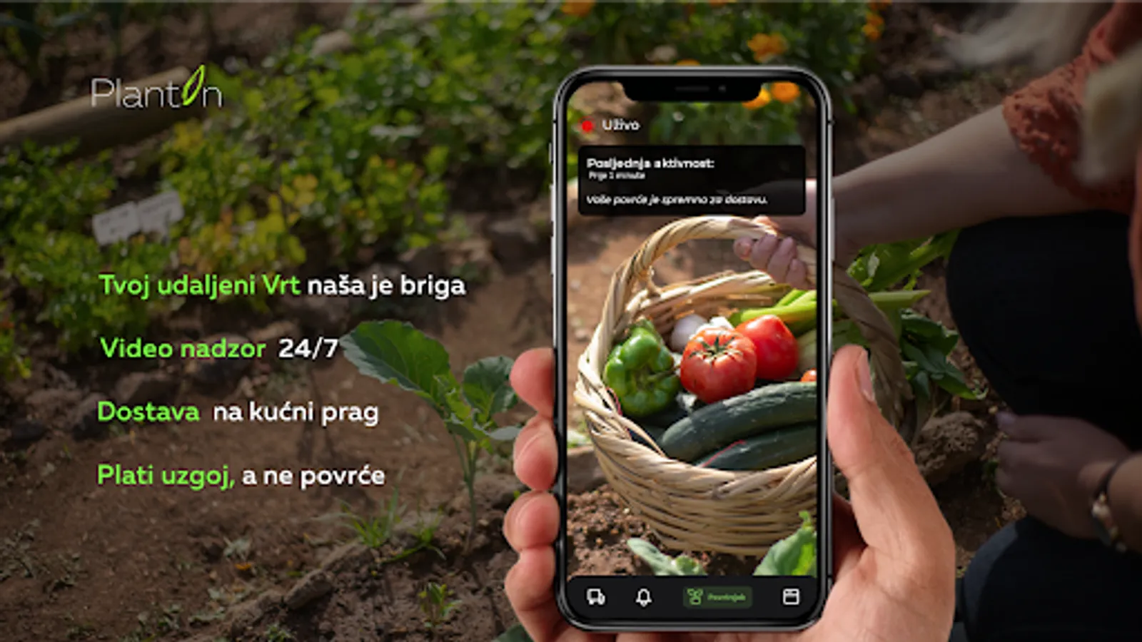 The PlantOn application allows you to lease a service with which you get a remote garden cared for by an experienced producer, and you receive fresh, healthy and locally grown vegetables at your doorstep. Through the application, you can order the delivery of ripe fruits from your garden, monitor the growth and development of fruits live, monitor all activities performed in the garden, communicate with your producer or read nutritional tips and recipes.