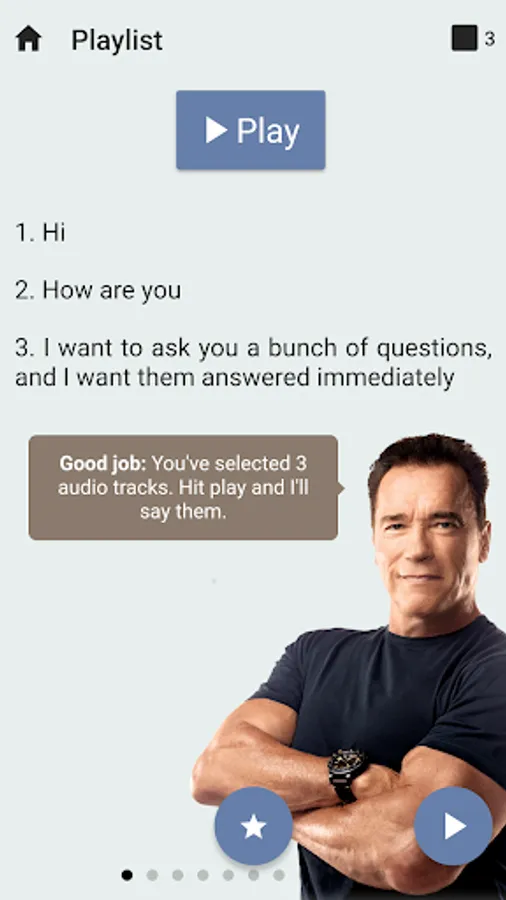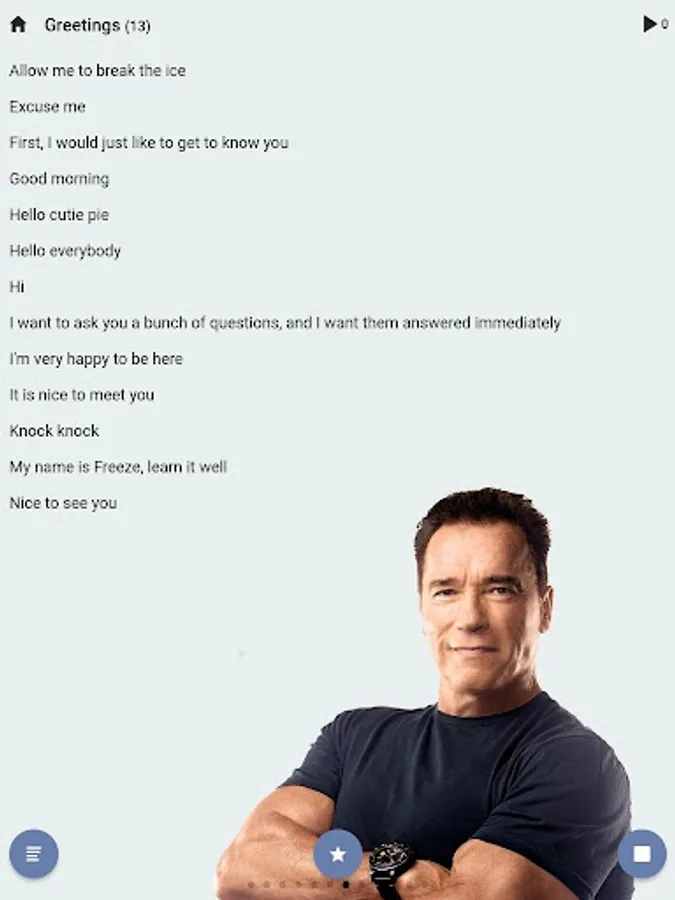 Listen to Arnold Schwarzenegger saying random things and famous sayings. Select words and phrases to be played back.