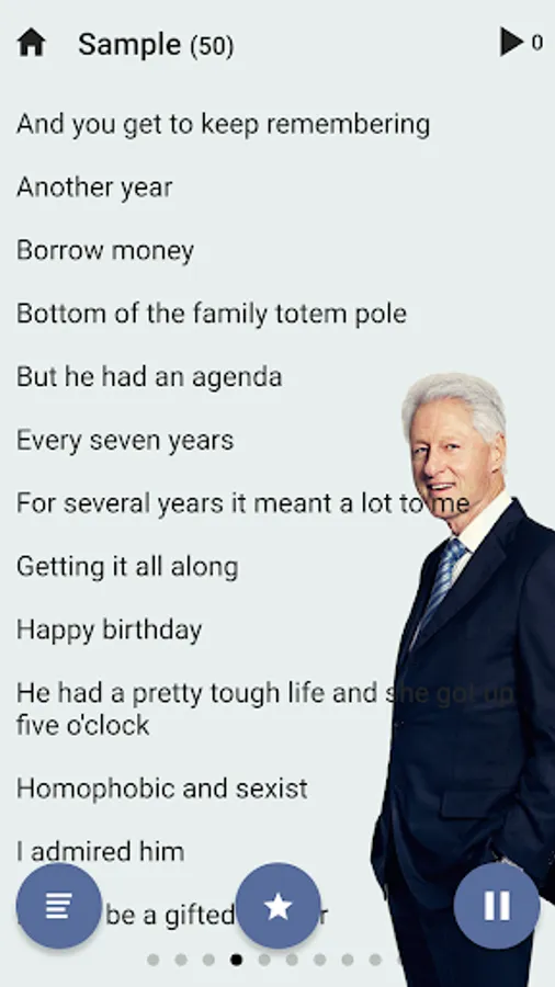 Listen to Bill Clinton saying random things and famous sayings. Select words and phrases to be played back.