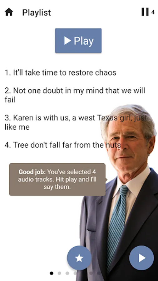 Listen to George Bush saying random things and famous sayings. Select words and phrases to be played back.
