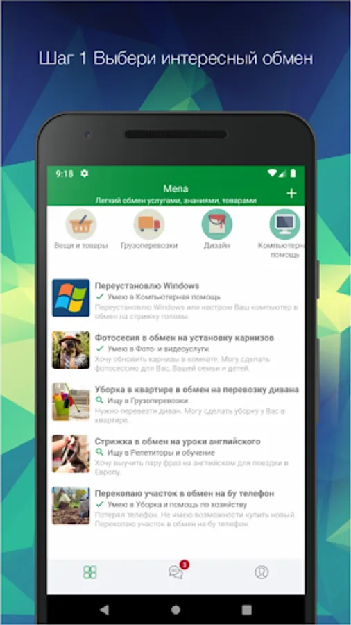 Or you are a student and want a new phone - offer another participant an exchange of goods for a service, for example, dig a site or clean up an apartment / house.