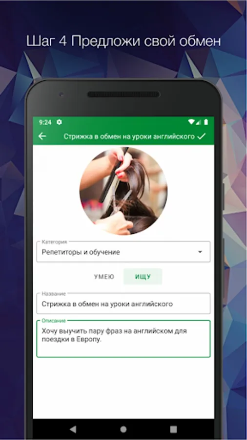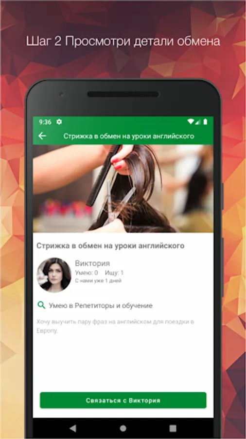 For example, you know how to make a haircut and gather for a trip to Europe, but don’t know English ... no problem - offer another exchange member with knowledge of English! And half of your goal has already been completed!