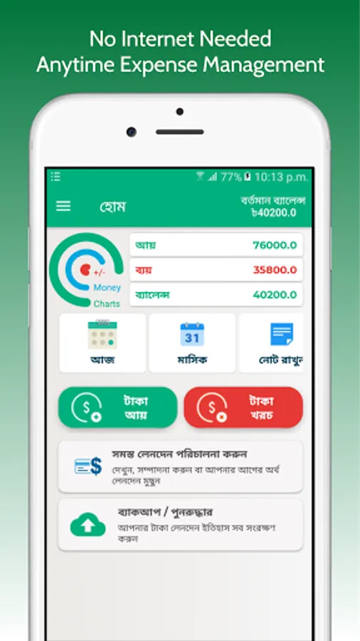 Daily Expense Manager, your personal account manager. Fast & reliable money calculation. Keep an eye on all of your money related transactions. Every calculation saved in offline and you can backup or restore it anytime.