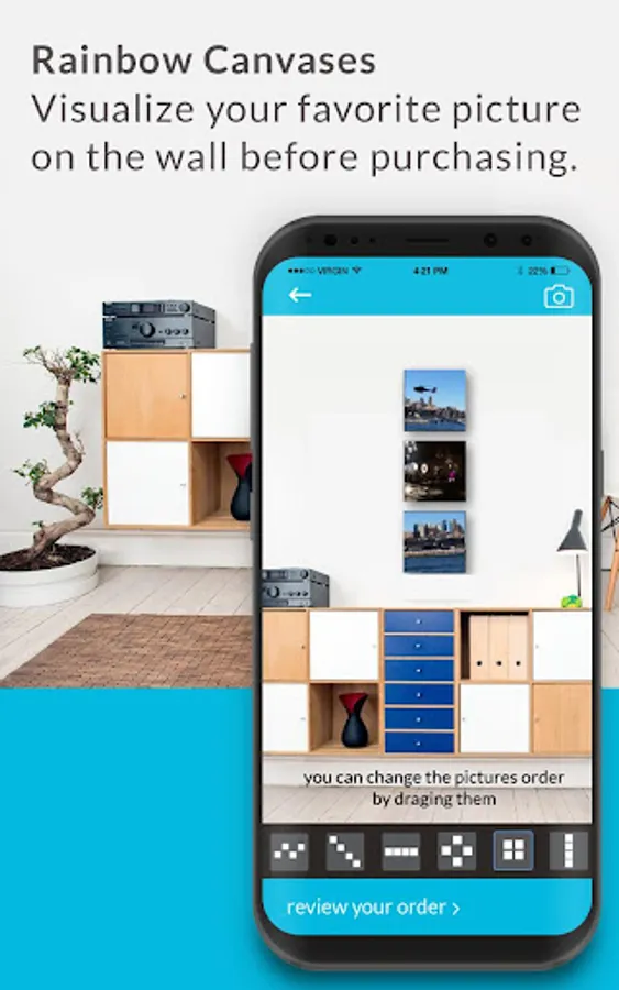 Do you want to print photos in canvas photo print that stick to your walls and use them as décor in your home? 🌈Rainbow Canvases are made from your photos and are ordered through this app! There is no better business model canvas and photo deliver app than 🌈Rainbow Canvas Printing🌈. In simple terms, it is a virtual reality tool and canvas printing gift shop with photo delivery. Order the perfect photos print canvases in the most convenient way yet.