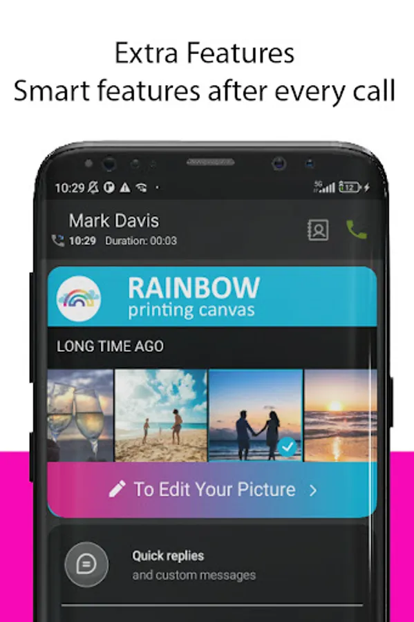 Use our after call feature for easy access to your favorite photo edits and effects after your phone calls.