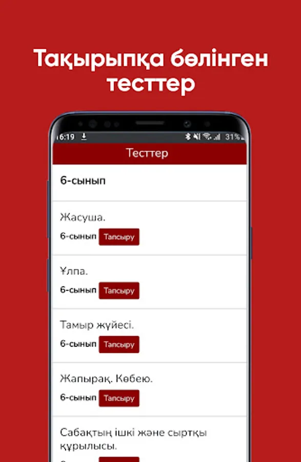 All tests are divided into topics after class. The total number of questions in the database is written on the main page.
