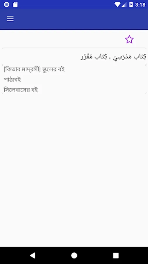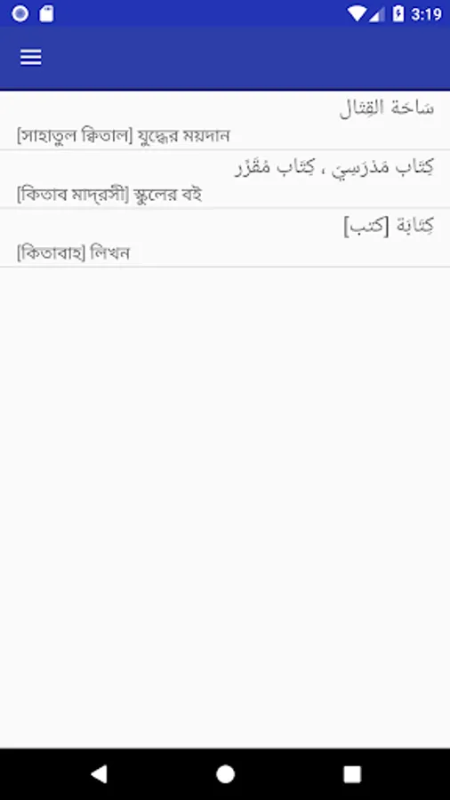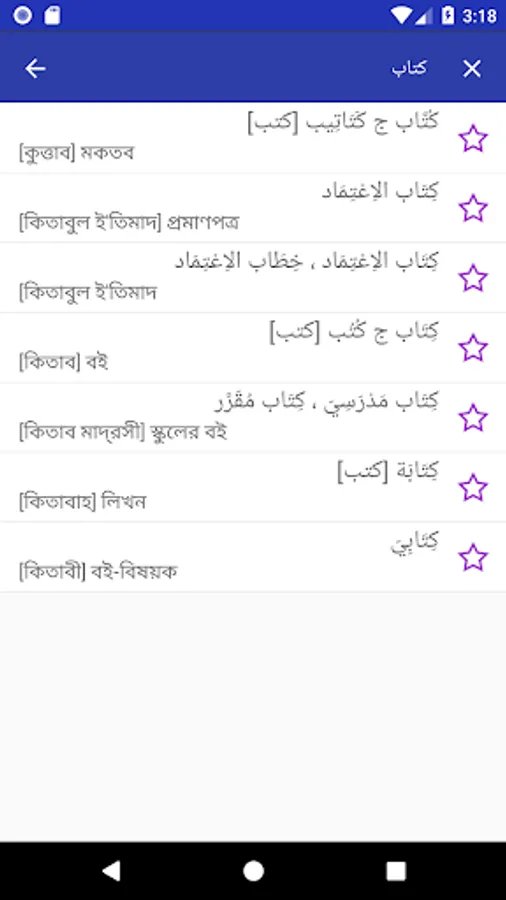 The dictionary of "Al-Wafi" dictionary was provided free of charge to the readers. Then it has been updated in a few steps on the request of users and users. Now if the word is Bangla, then its Arabic synonyms also come. Apart from writing Arabic pronunciation with Bengali letters, Arabic entries also came. In this, those who do not have Arabic keyboard on their mobile or those who are not in Arabic, they can also see the meaning of Arabic as they write Bangla pronunciation. Hopefully, the necessary updates to the app will continue.