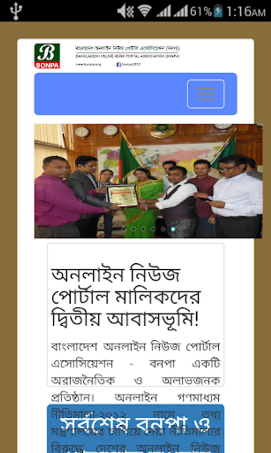 Bangladesh Online News Portal Association (BONPA) is a association of Bangladesh which fight for online news portal's right. BONPA ensured success many time for online freedom.