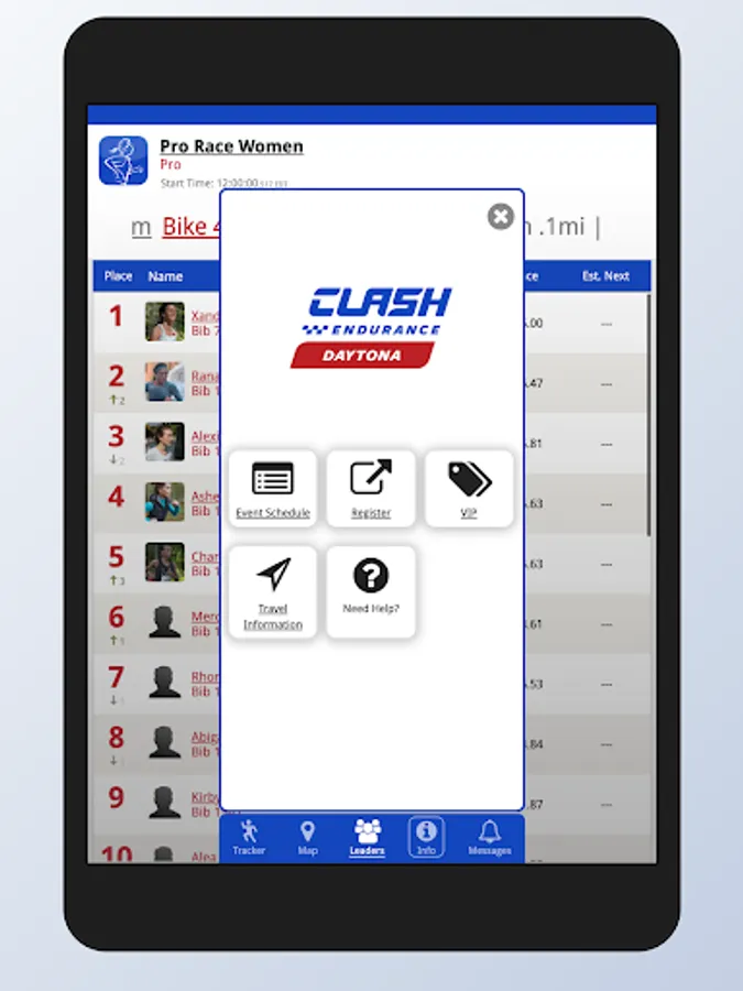 The CLASH Endurance Tracker App provides real-time athlete tracking and other services for athletes and spectators for all CLASH endurance races and events.