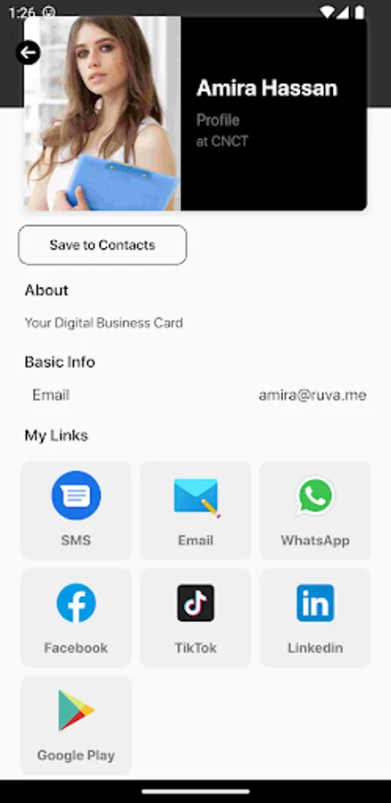 Introducing our Digital Business Card app – the modern and efficient way to connect and share your professional information. Quickly create your profile with all your personal and professional details, including name, title, company, contact information and profile picture. Choose from customizable templates to give your digital business card a unique look that represents your personal brand. Generate a unique QR code to easily share and add your digital business card to others' contacts. Manage all your contacts in one place and view their digital business cards directly from the app. Say goodbye to traditional business cards and start networking in a more convenient and eco-friendly way.