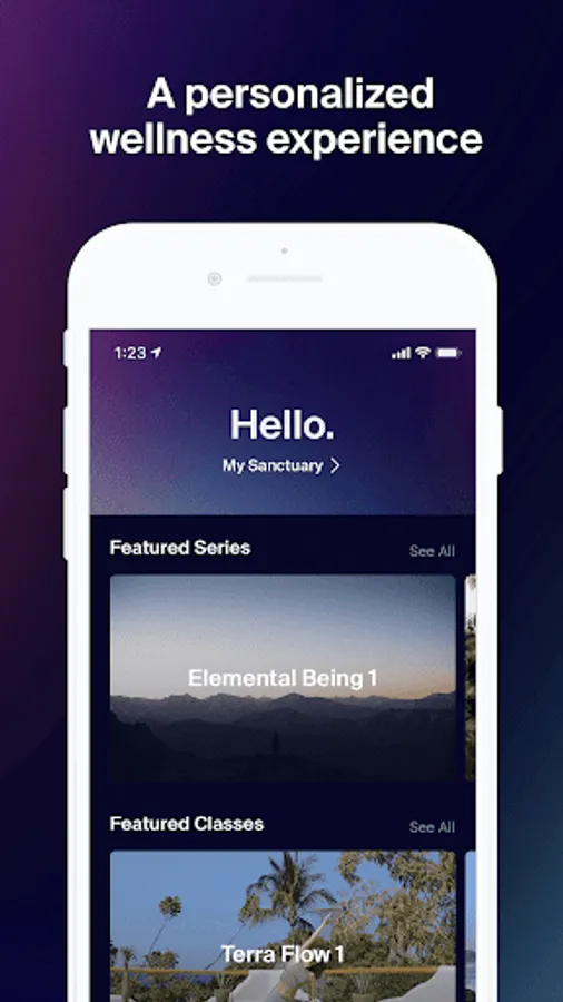 Sanctuary is your bookable, private space to bend, breathe, and or just be. Reserve one of our luxe, immersive studios via our app, which allows you to fully customize your own micro-retreat — from premium class content with yoga and mindfulness teachers from around the world, to your favorite natural scent and ideal temperature.