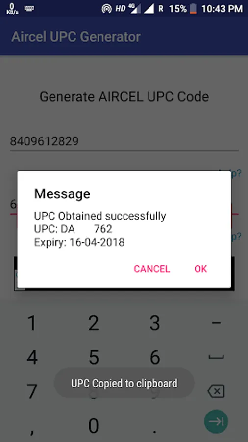 - This is unfortunate but if you are not able to get UPC throught app then you can try the helpline numbers. Numbers are listed below according to your state.