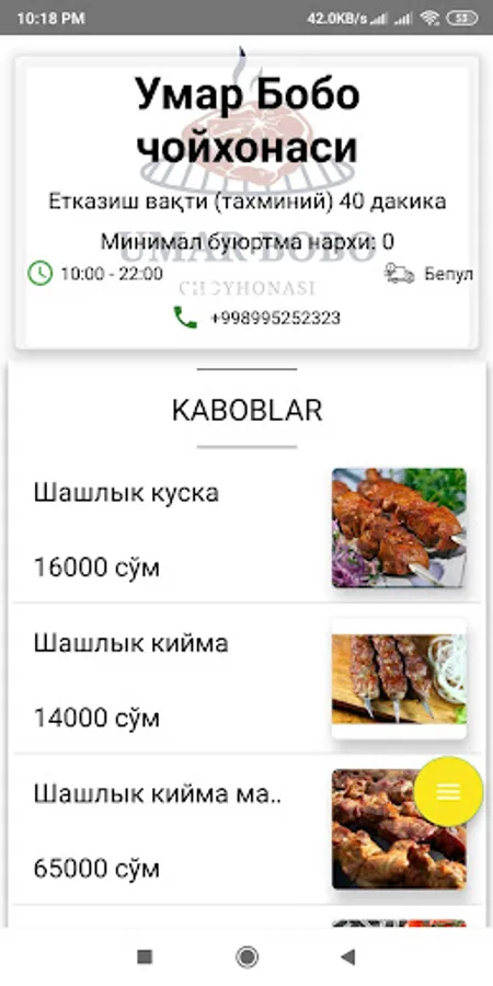 Food Delivery service in Jizzakh. If you have any question about our program feel free to contact us (99) 400 64 68