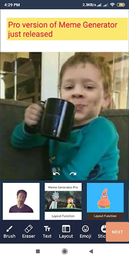 In all, this is a meme generator pro, with a simple interface and a fully-fledged photo editor.