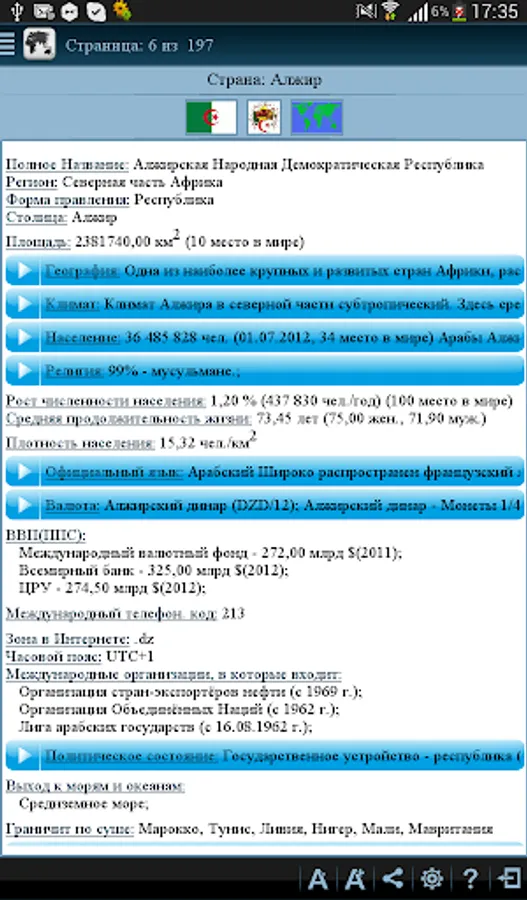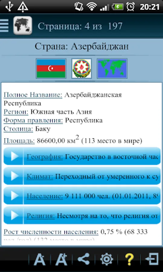 Handbook with information about all countries of the world. It contains basic and detailed information about all countries of the world.