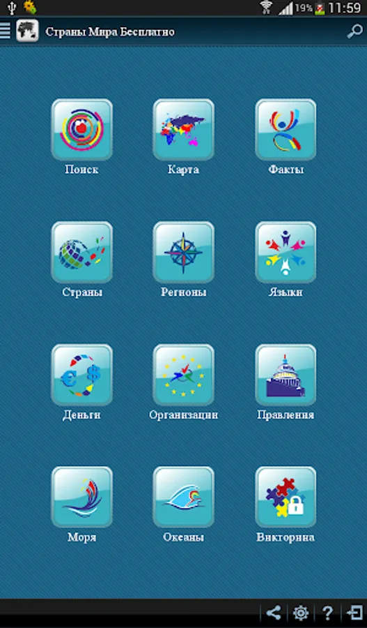 It also contains information about the oceans, seas, all monetary units, types of government, regions, international organizations, languages, and about many other things.